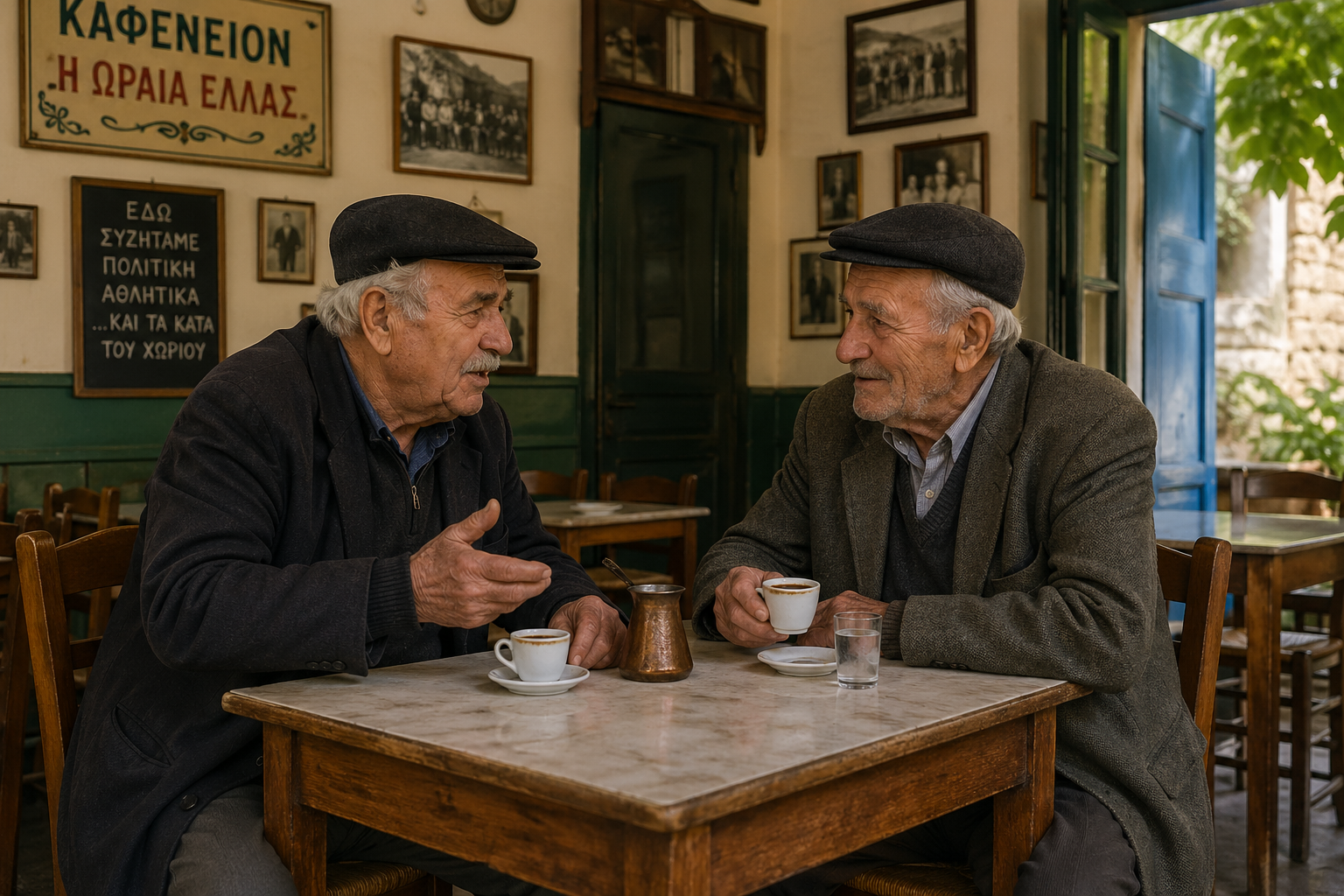 Ρουφώ την πρώτη γουλιά του μοναδικού μέτριου με ολίγη, που μ’ αφήνει πια ο θεράπων ιατρός να χαρώ, κι ακούω τον κυρ-Μανώλη δίπλα μου, κάτι να μουρμουρίζει.